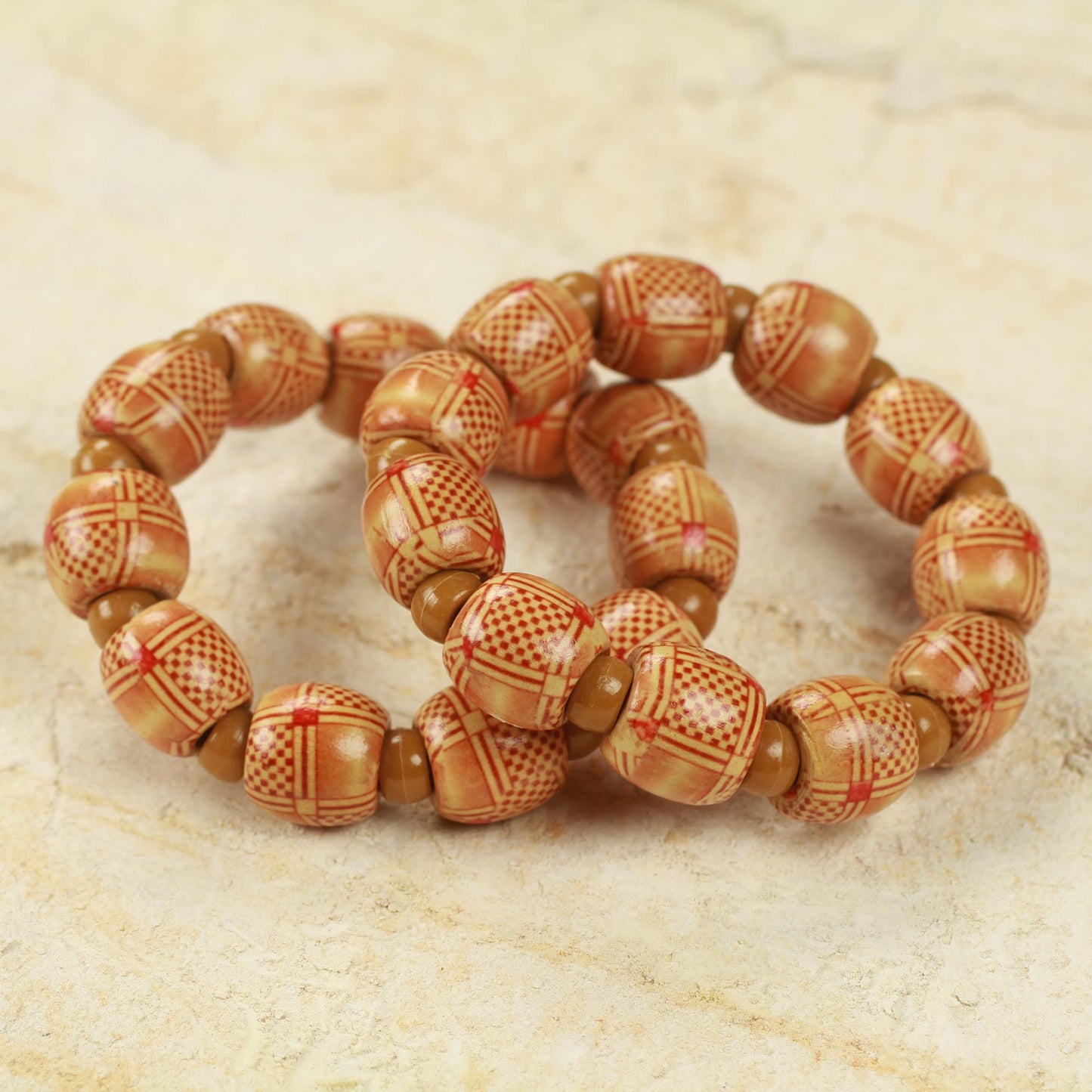 Twice Happy 2 Fair trade African Beaded Wood Stretch Bracelets