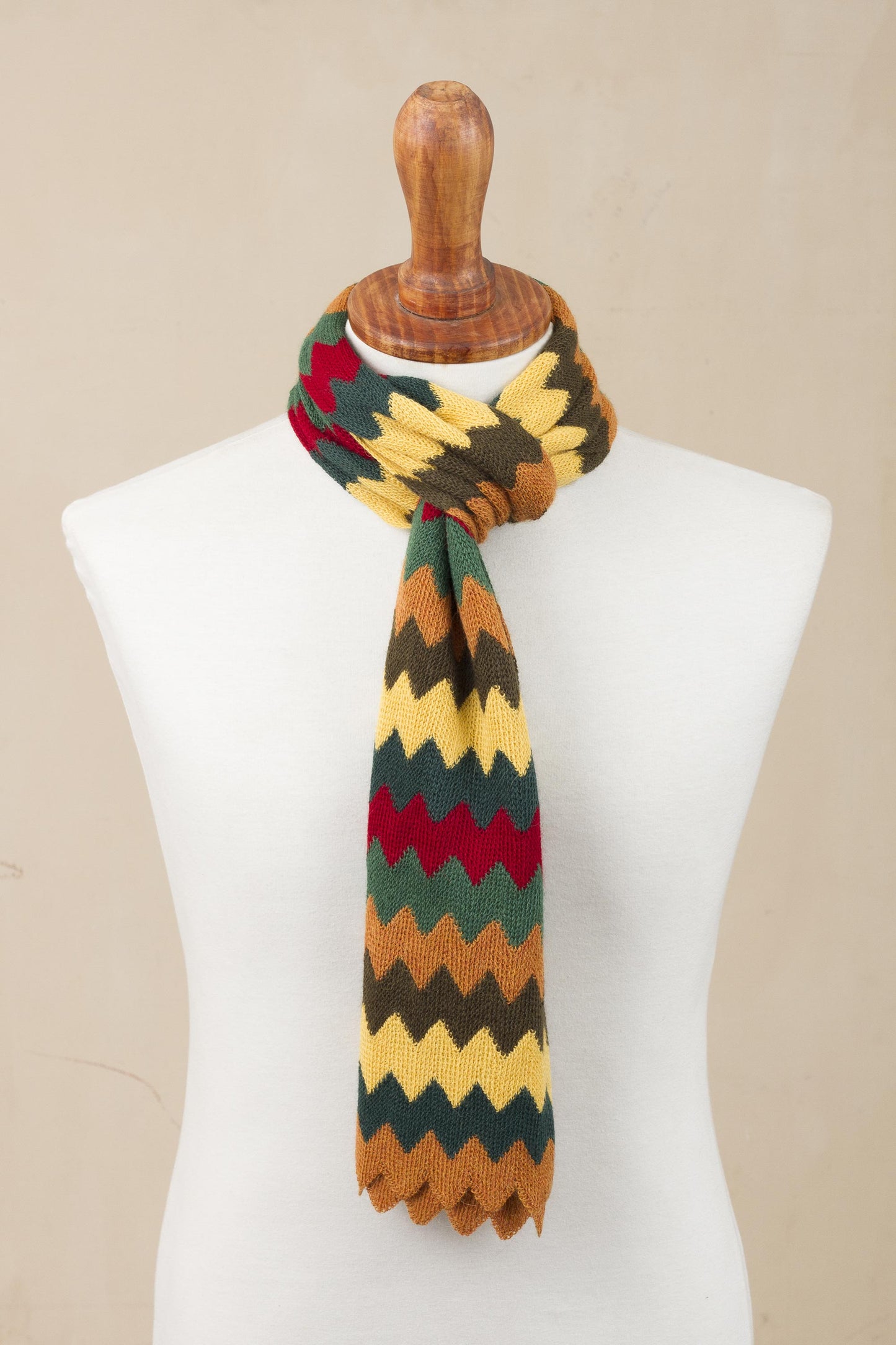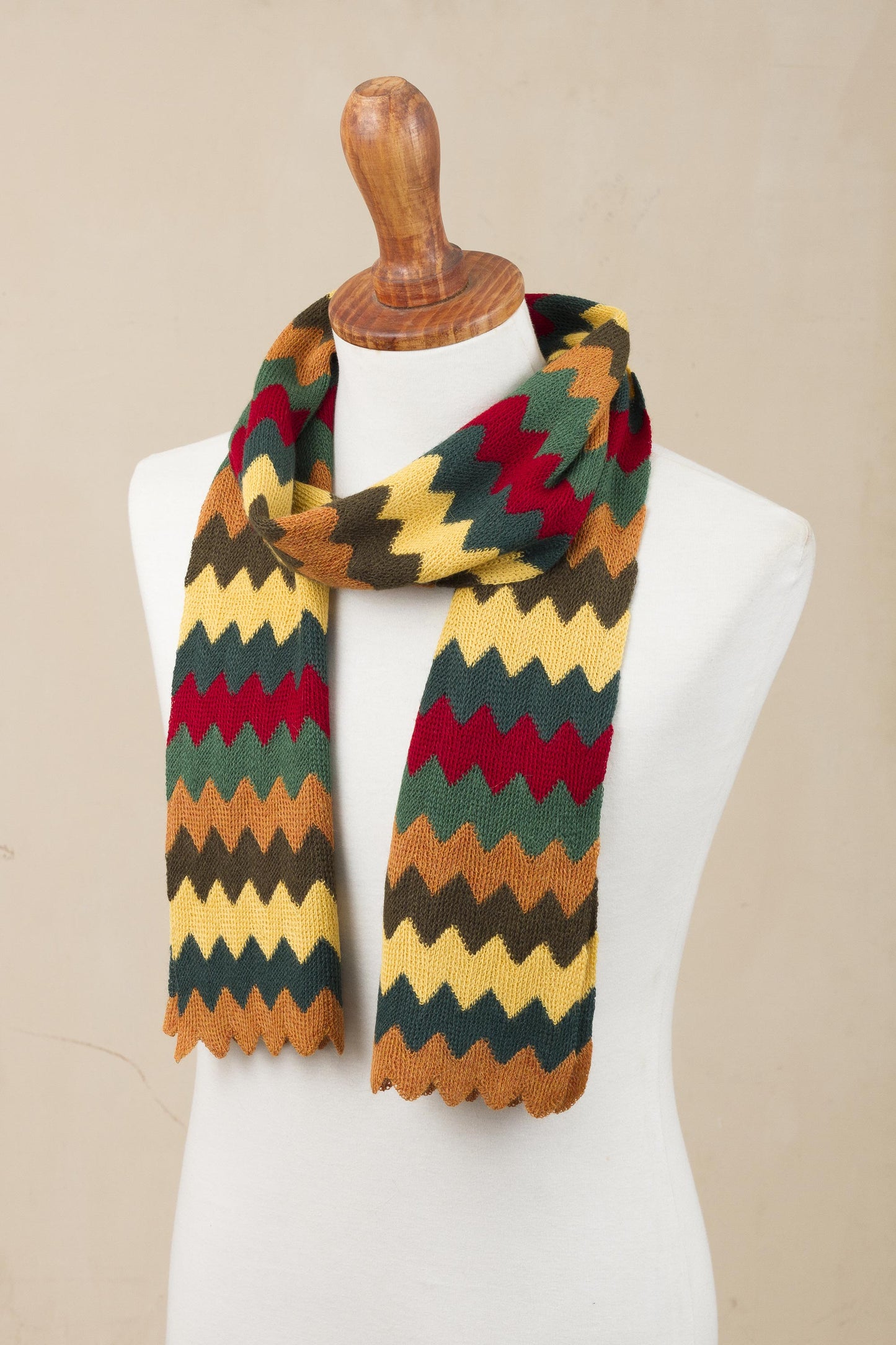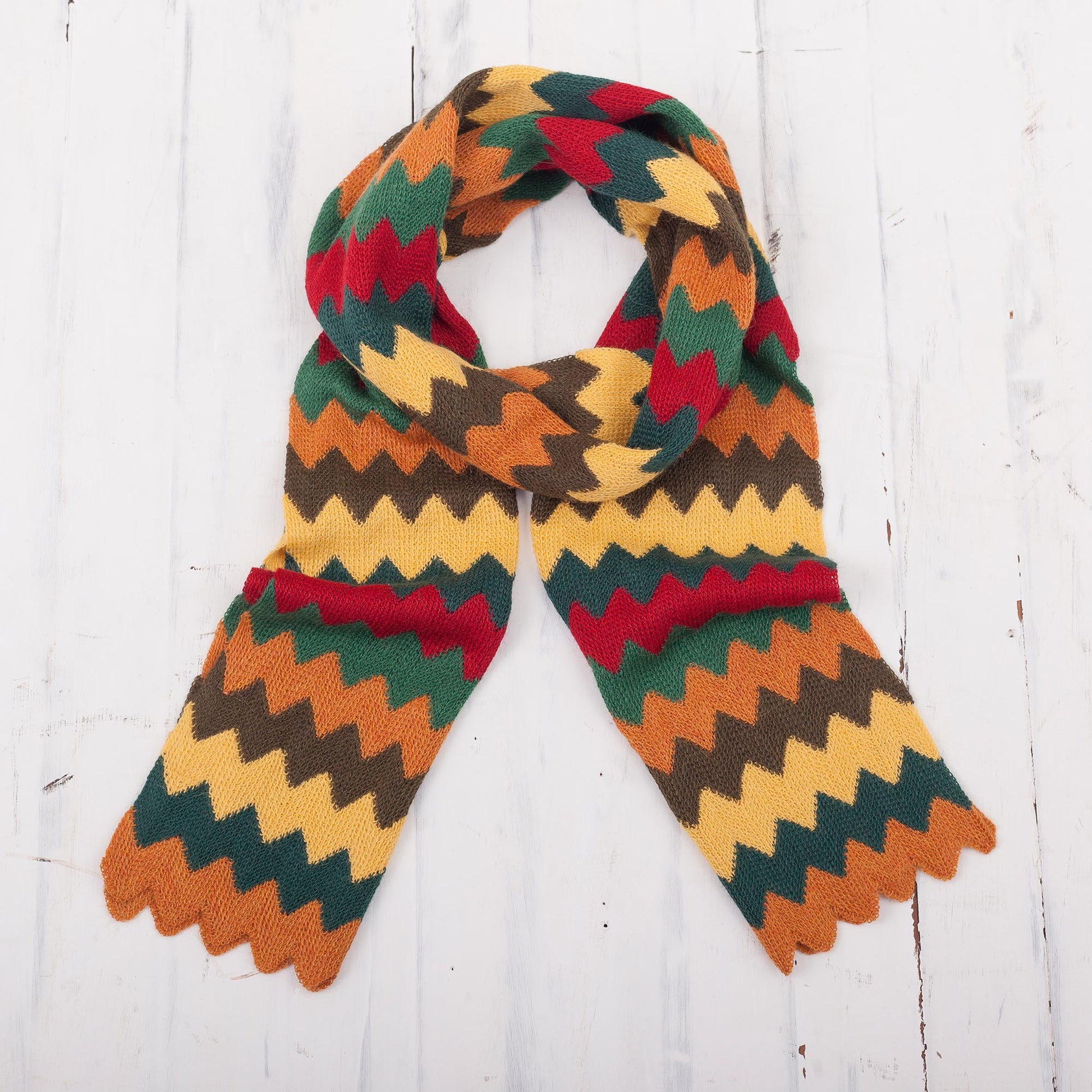 Warm Zigzags Colorful Zigzag Alpaca Blend Wrap Scarf from Peru