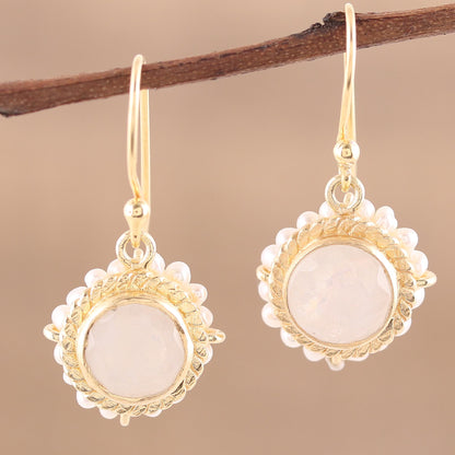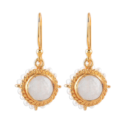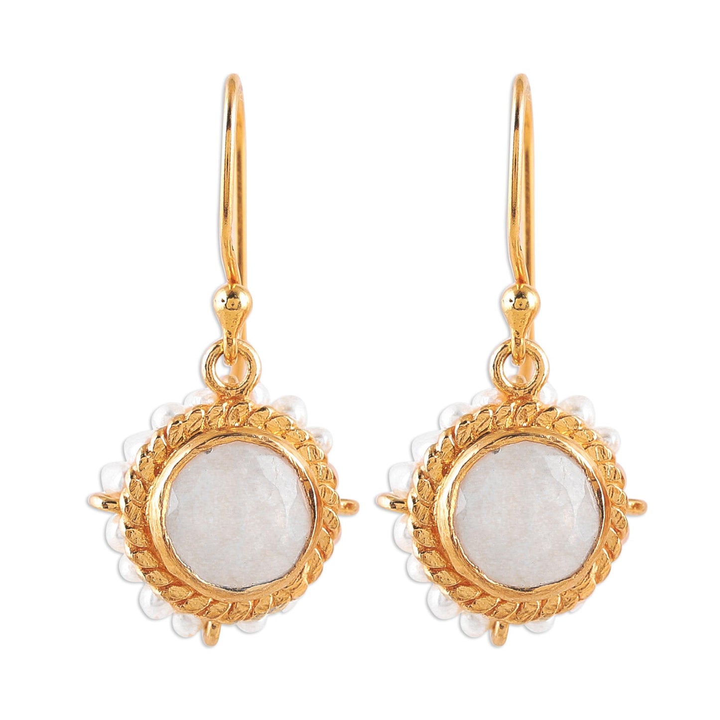 White Harmony 22k Gold Plated Rainbow Moonstone Cultured Pearl Earrings