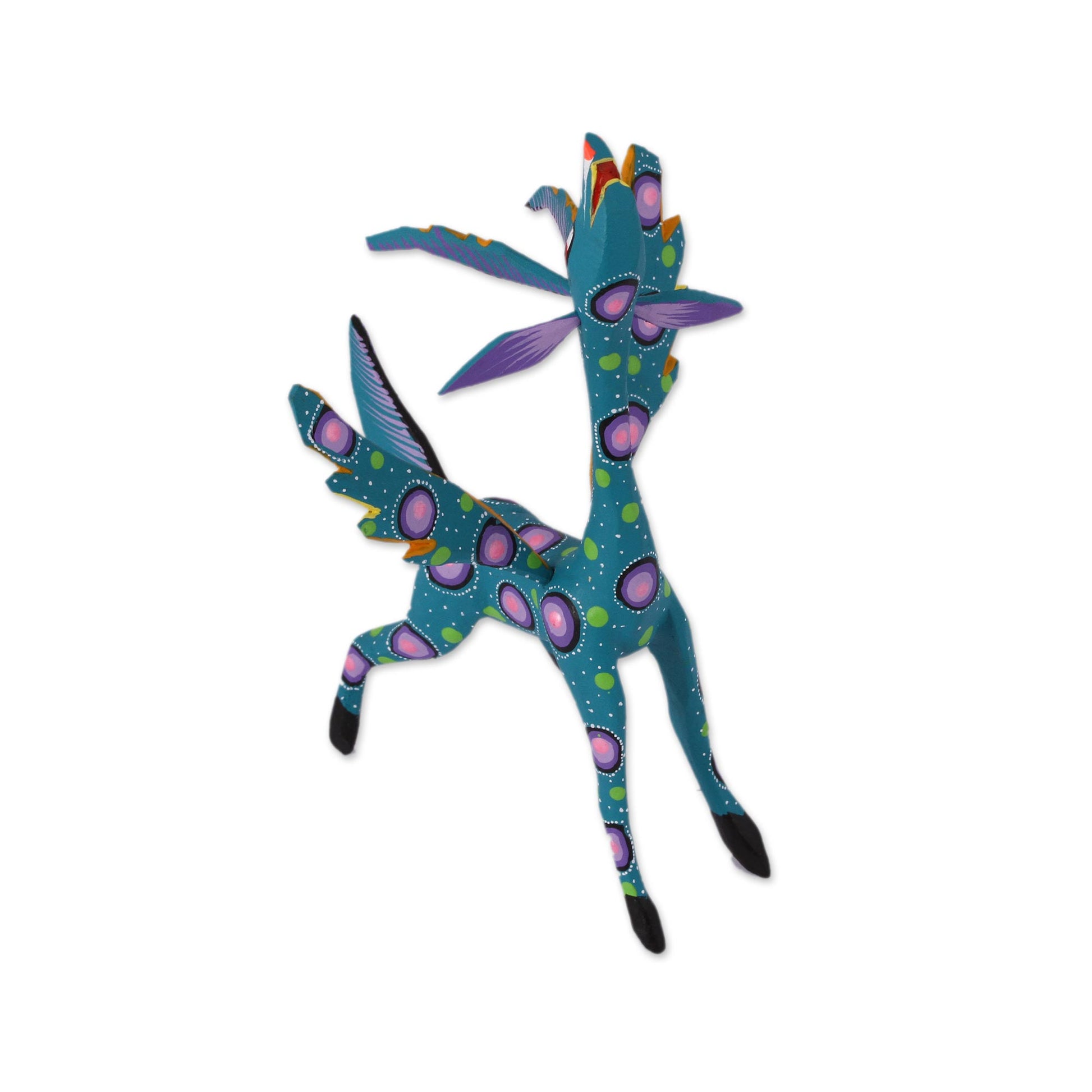 Winged Song Teal Alebrije Gazelle with Multicolor Hand Painted Motifs
