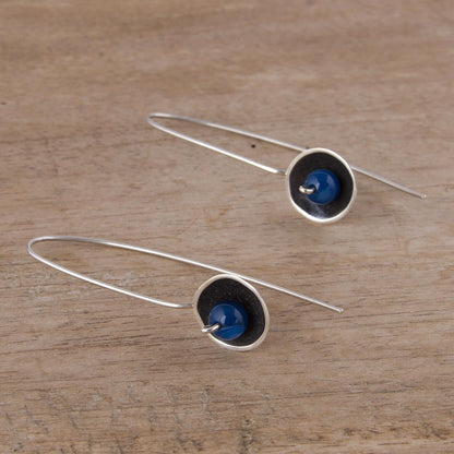 Wondrous Galaxy in Blue Blue Agate and Sterling Silver Drop Earrings from Peru