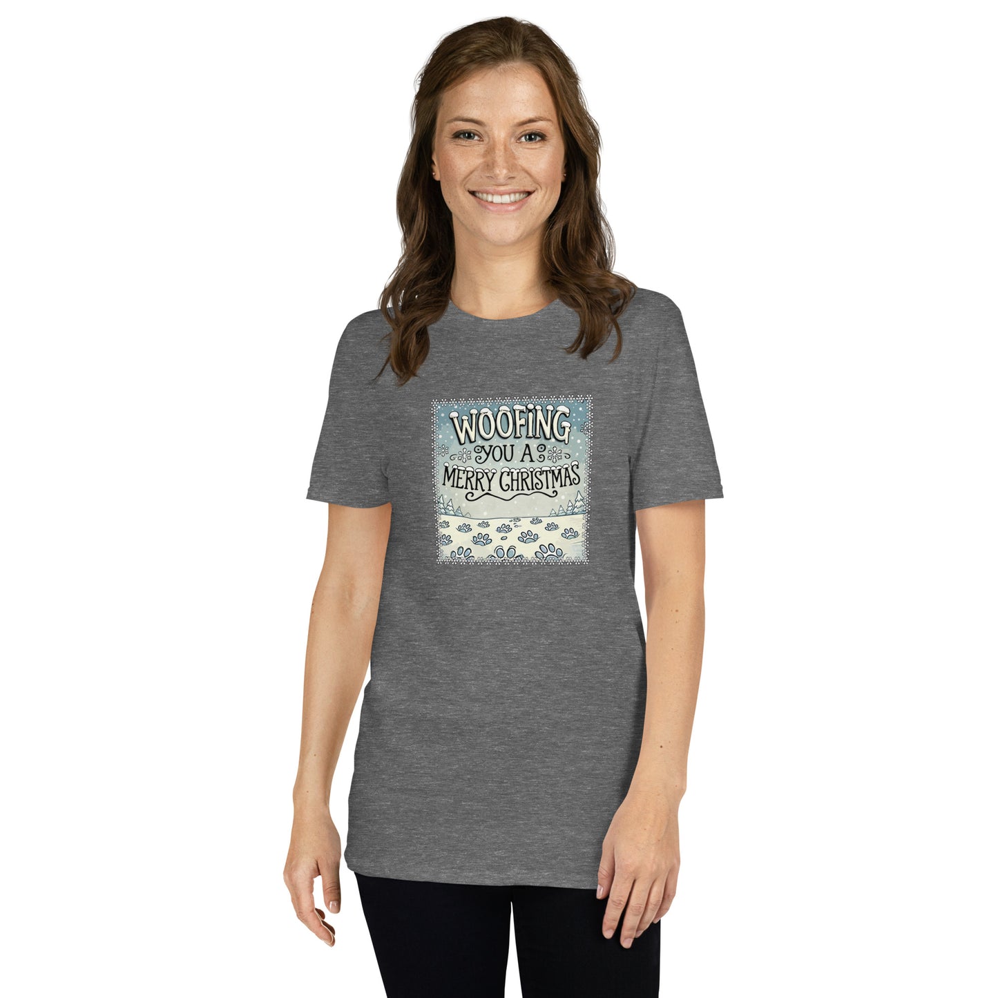 This short sleeve tee is made of 100% ring-spun cotton and is soft and comfy and perfect for those who love dogs and the holiday season.