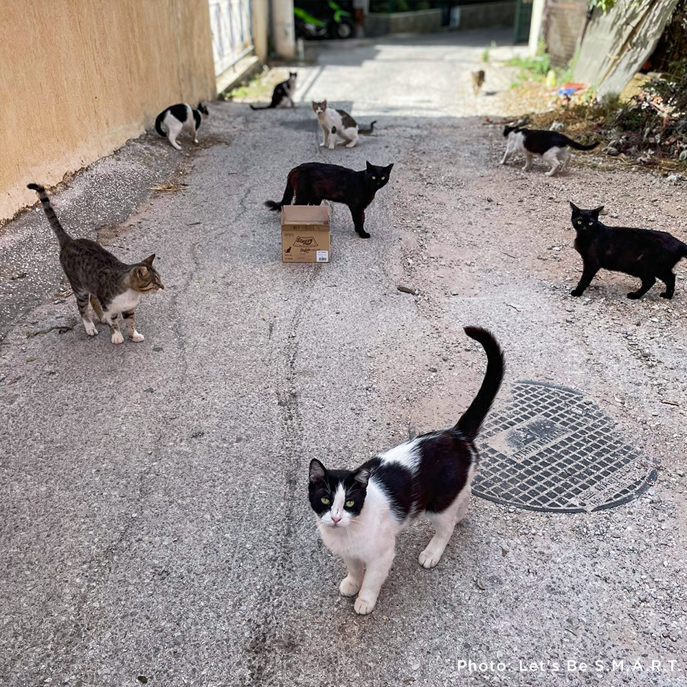 Animals search for scraps wherever they can find them. Puppies and kittens, many orphaned, have a slim chance of survival without intervention. Overpopulation is a large issue, increasing the spread of disease, probability of injury, and forcing animals to compete for resources.